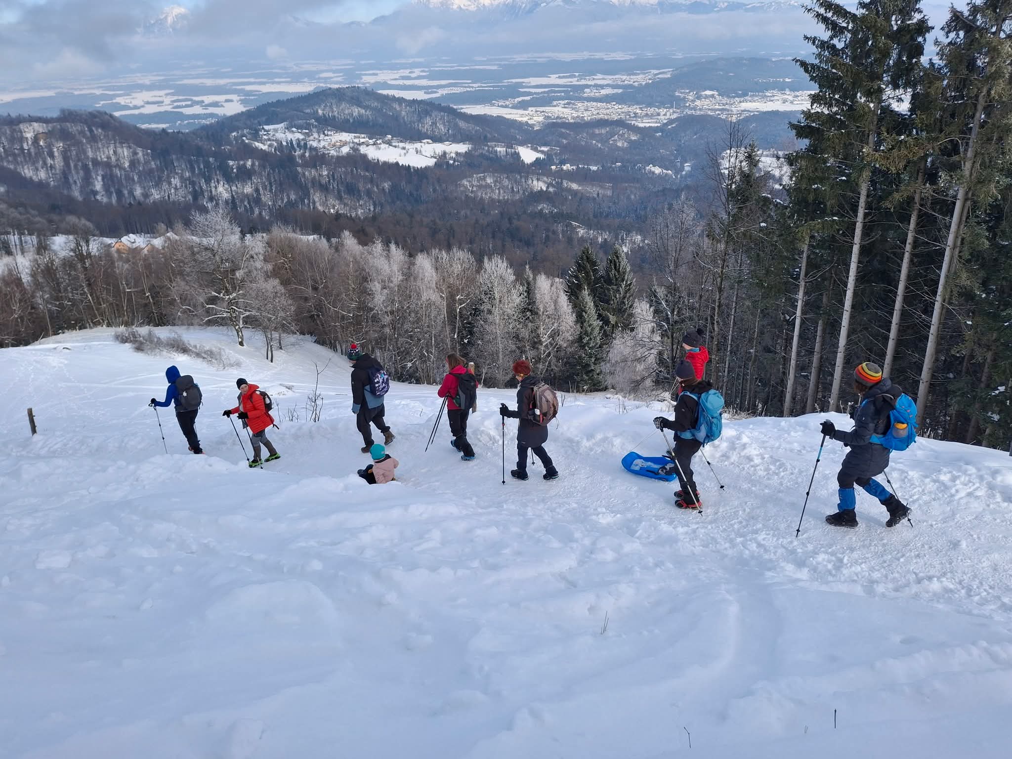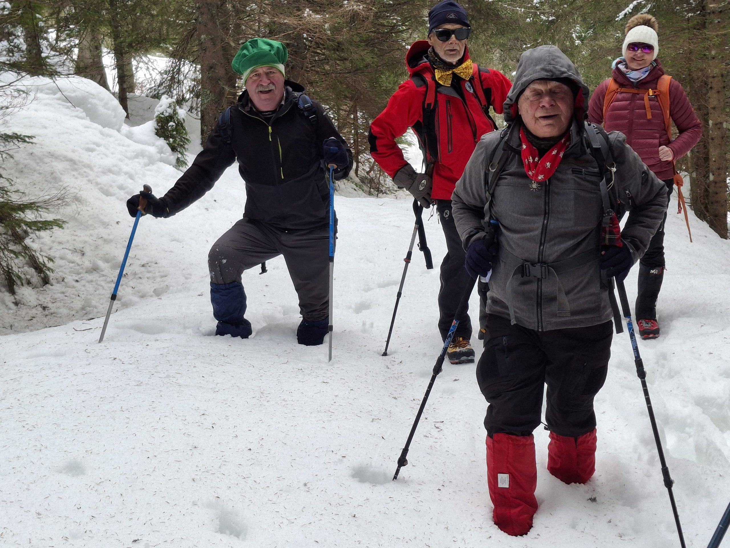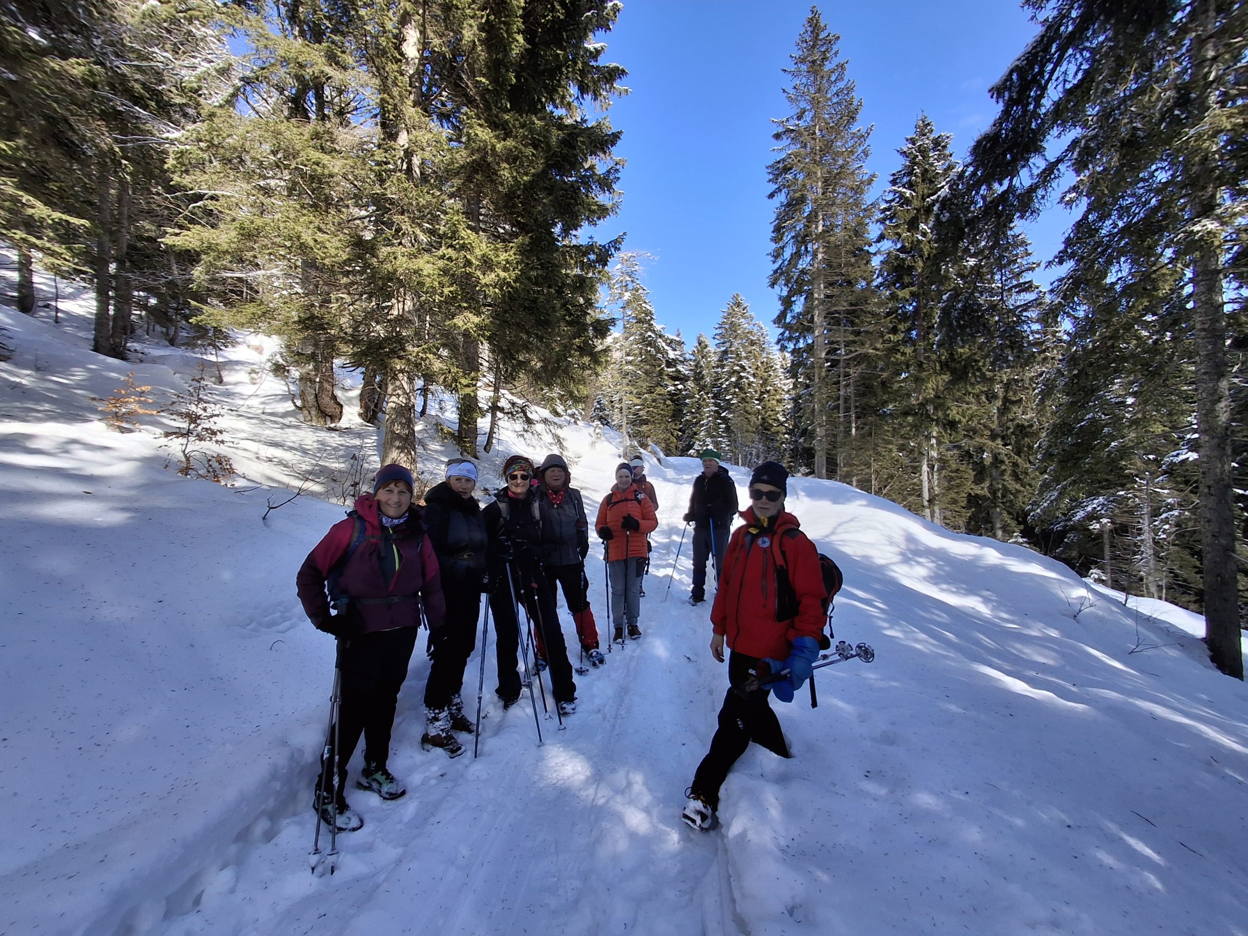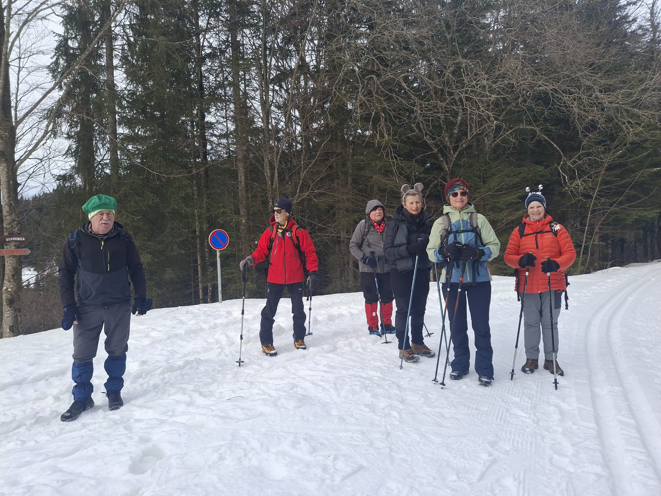 Sledi vzpon do Planine Konjščica, hvala našim, da so zgazili pot, laže nam je bilo, čeprav smo se velikokrat vdrli čez kolena.
