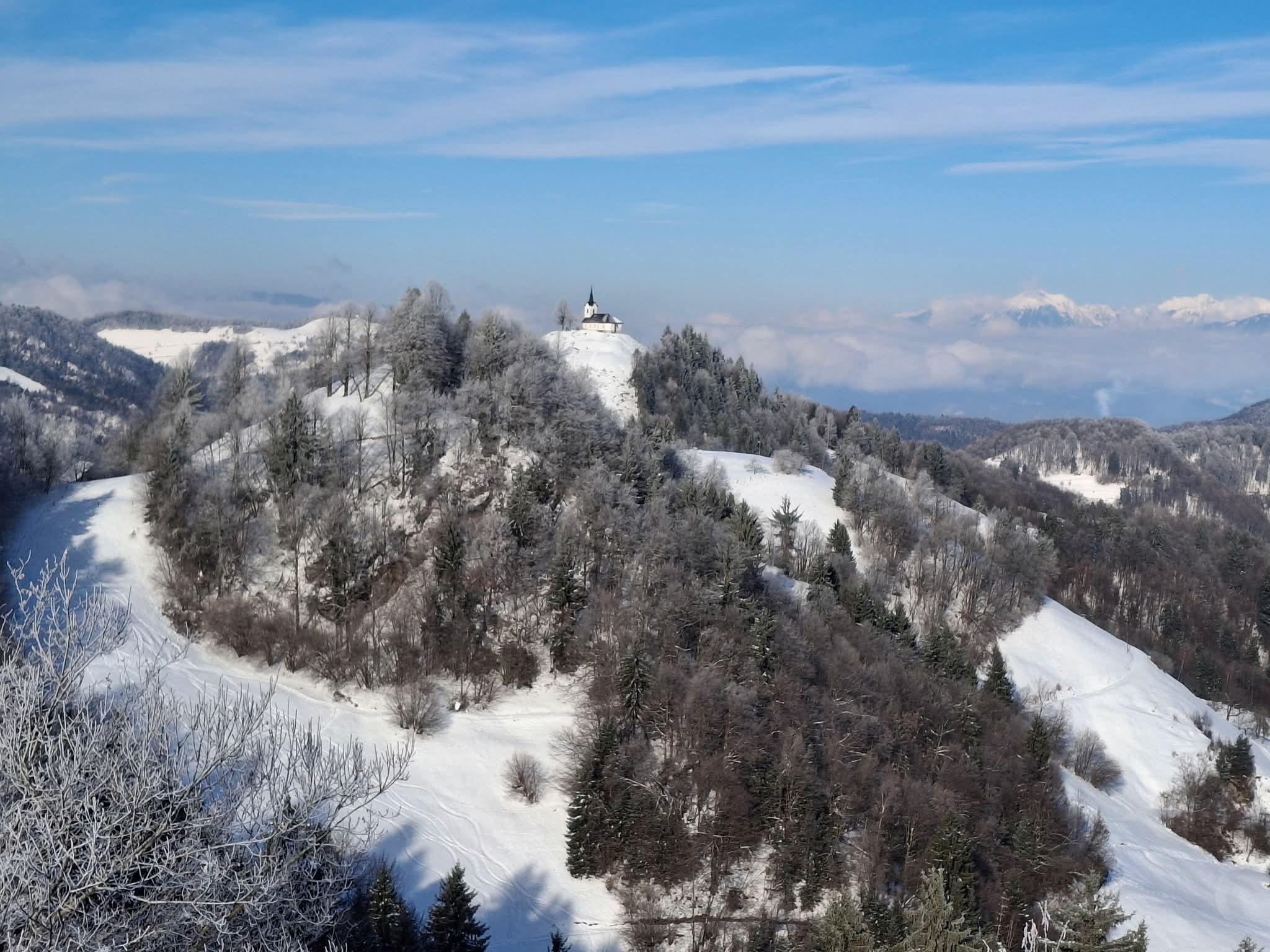 Ujeli smo tudi prebujajočo pomlad, teloh, ki je sramežljivo kukal v beli dan.