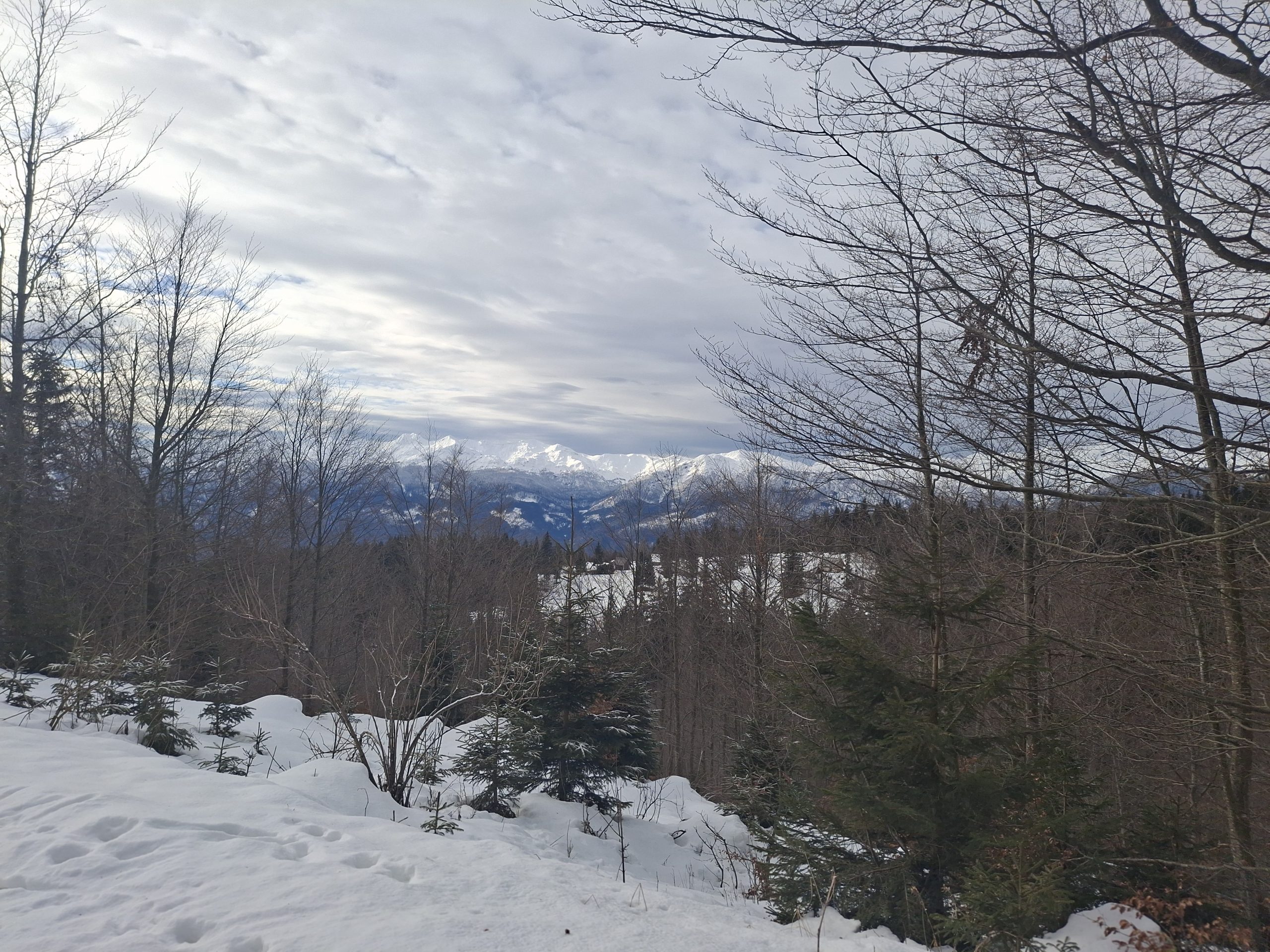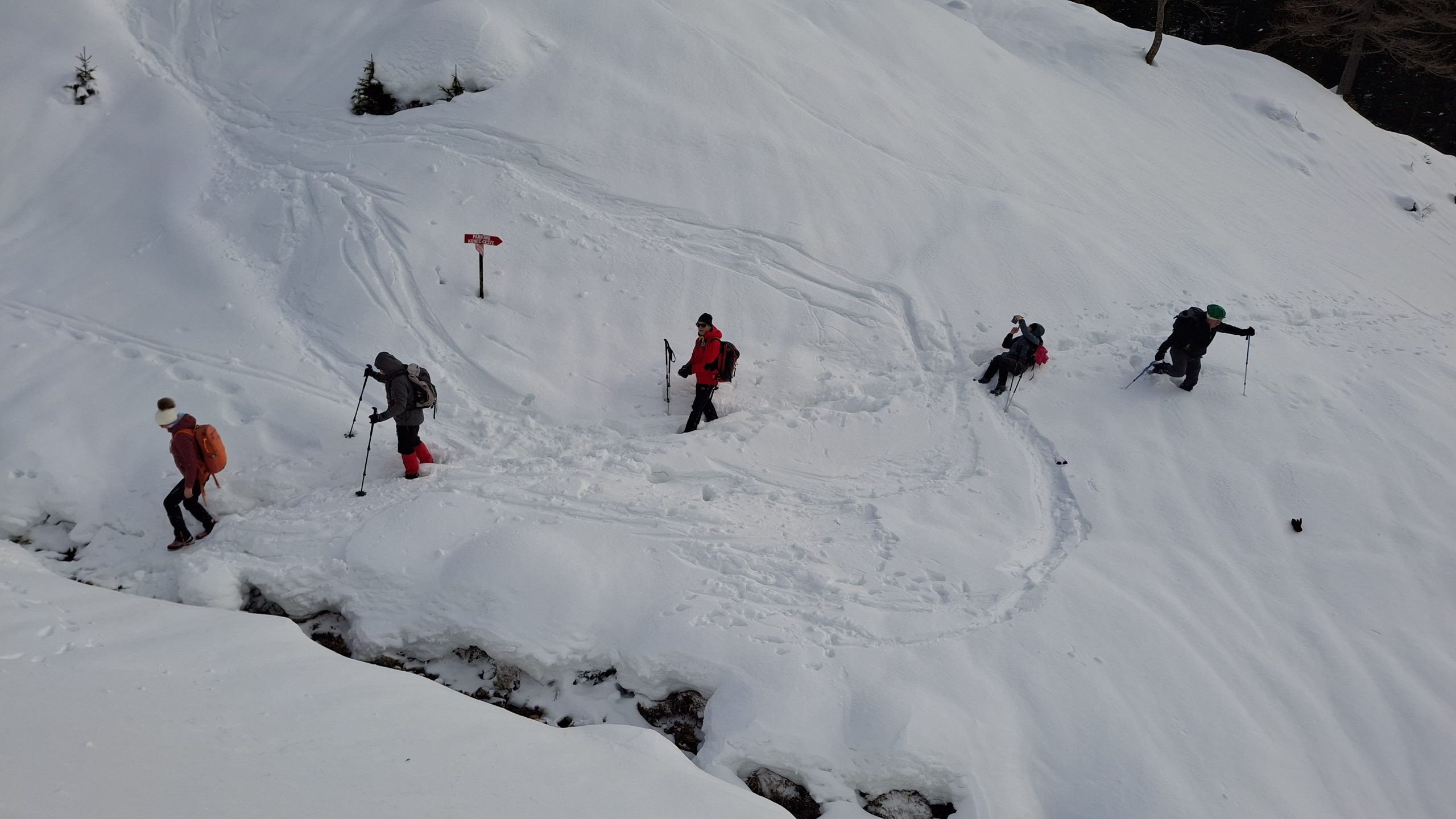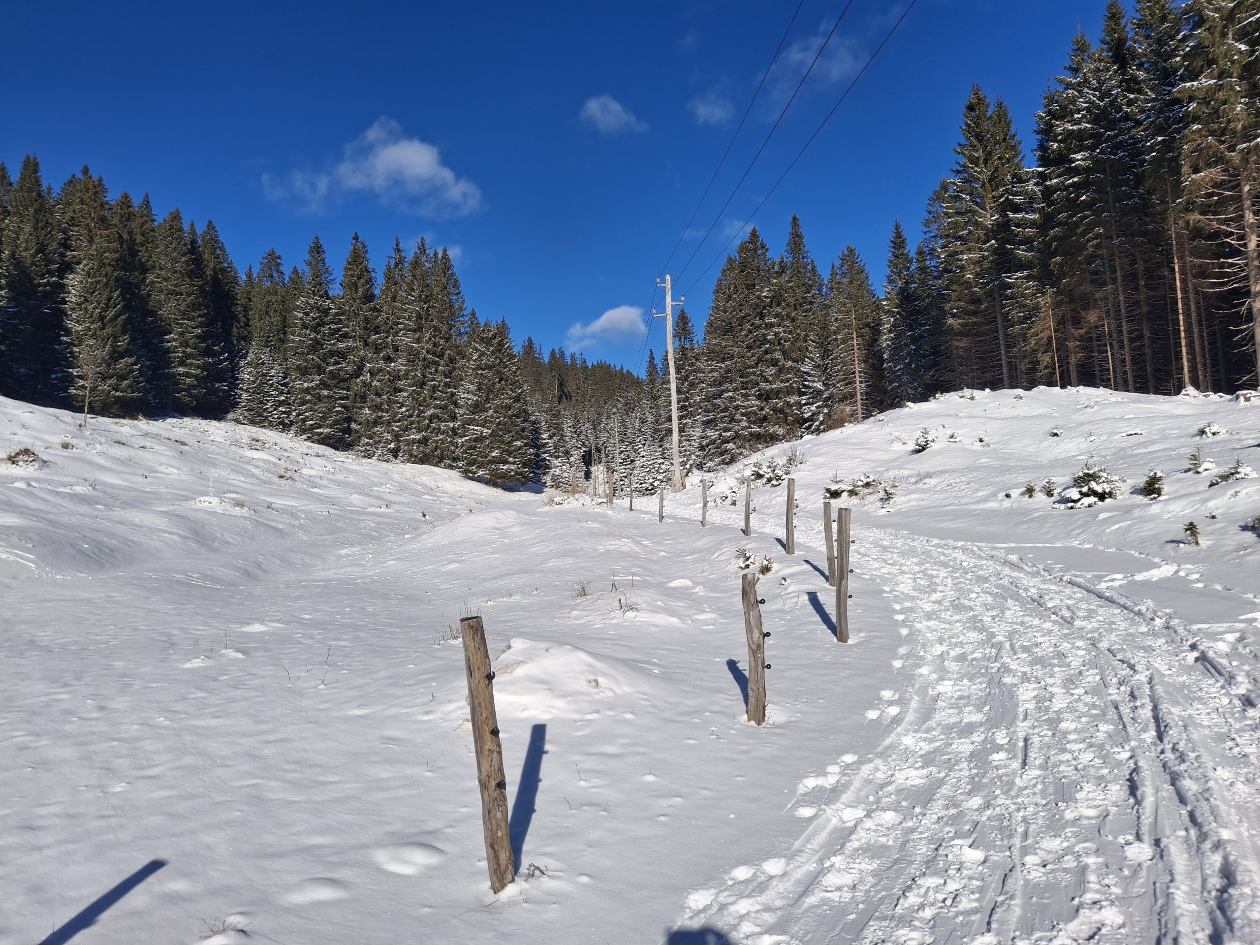 Gaženja pol ure do prvih smrek,  potem pa je že laže šlo.