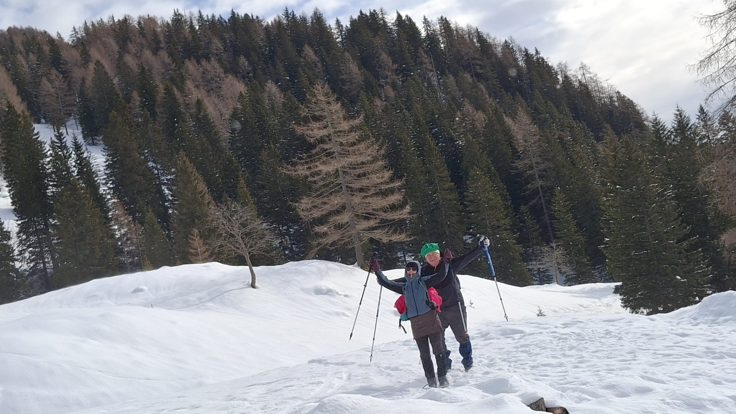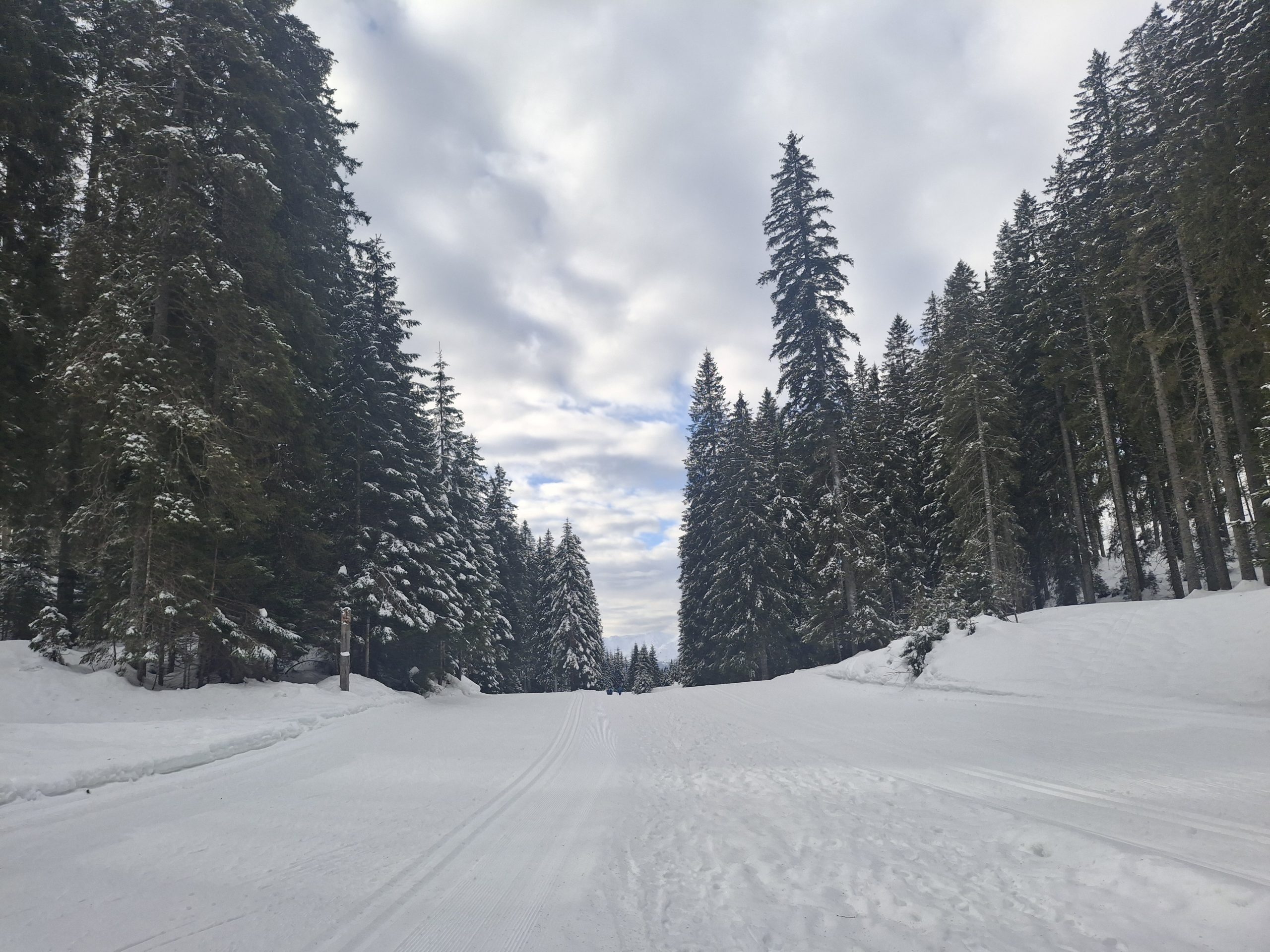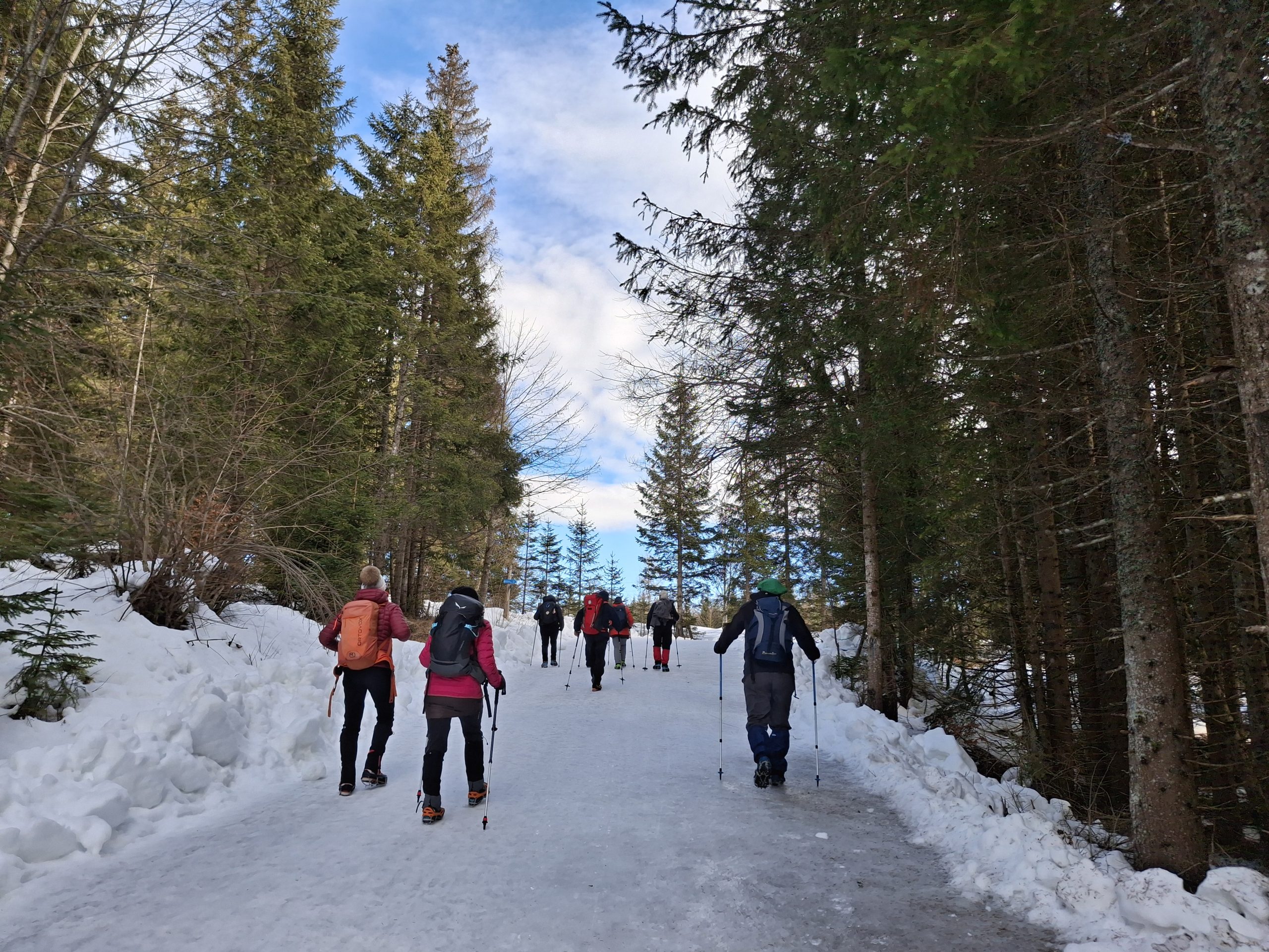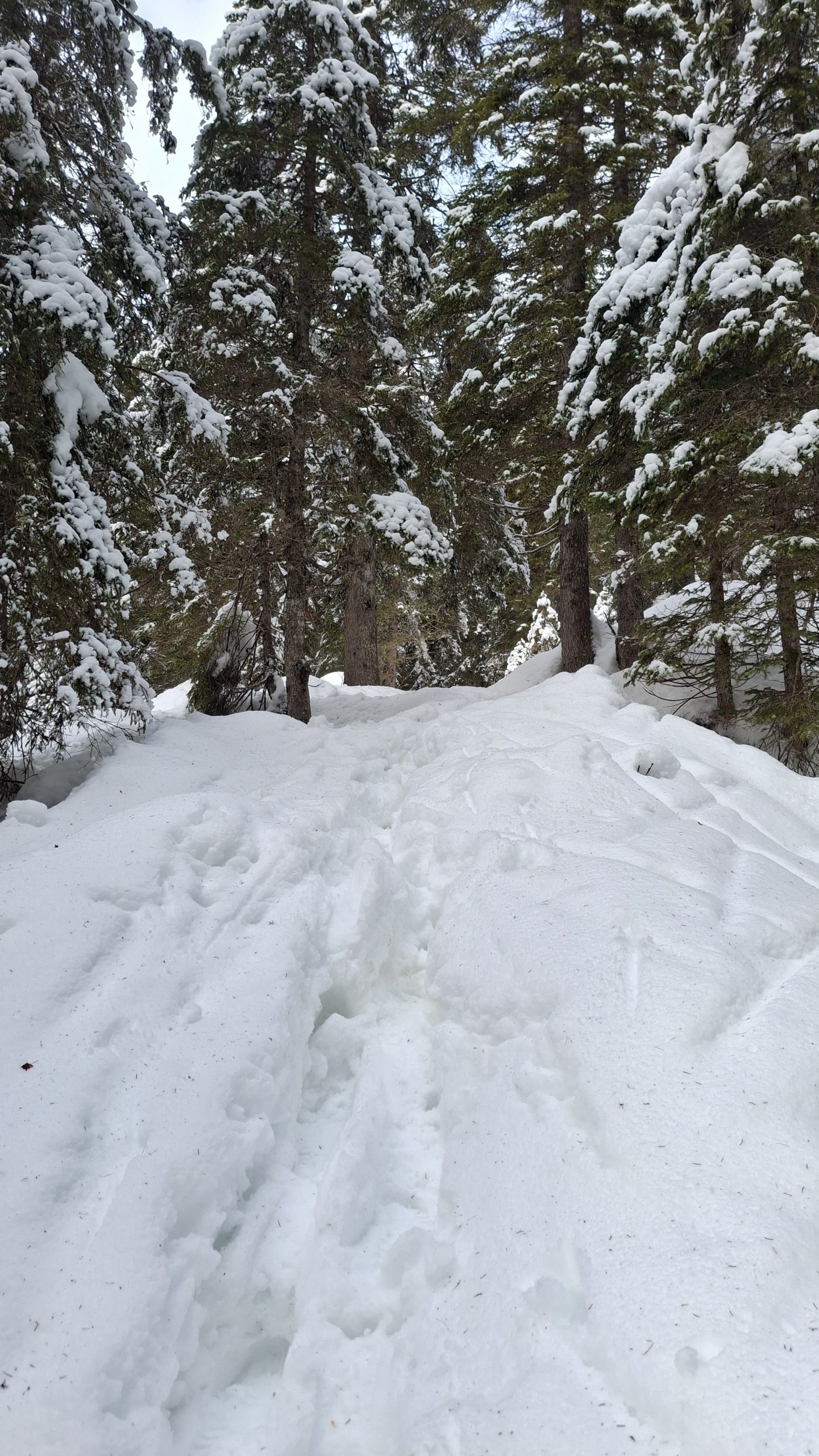 Gaženja pol ure do prvih smrek,  potem pa je že laže šlo.
