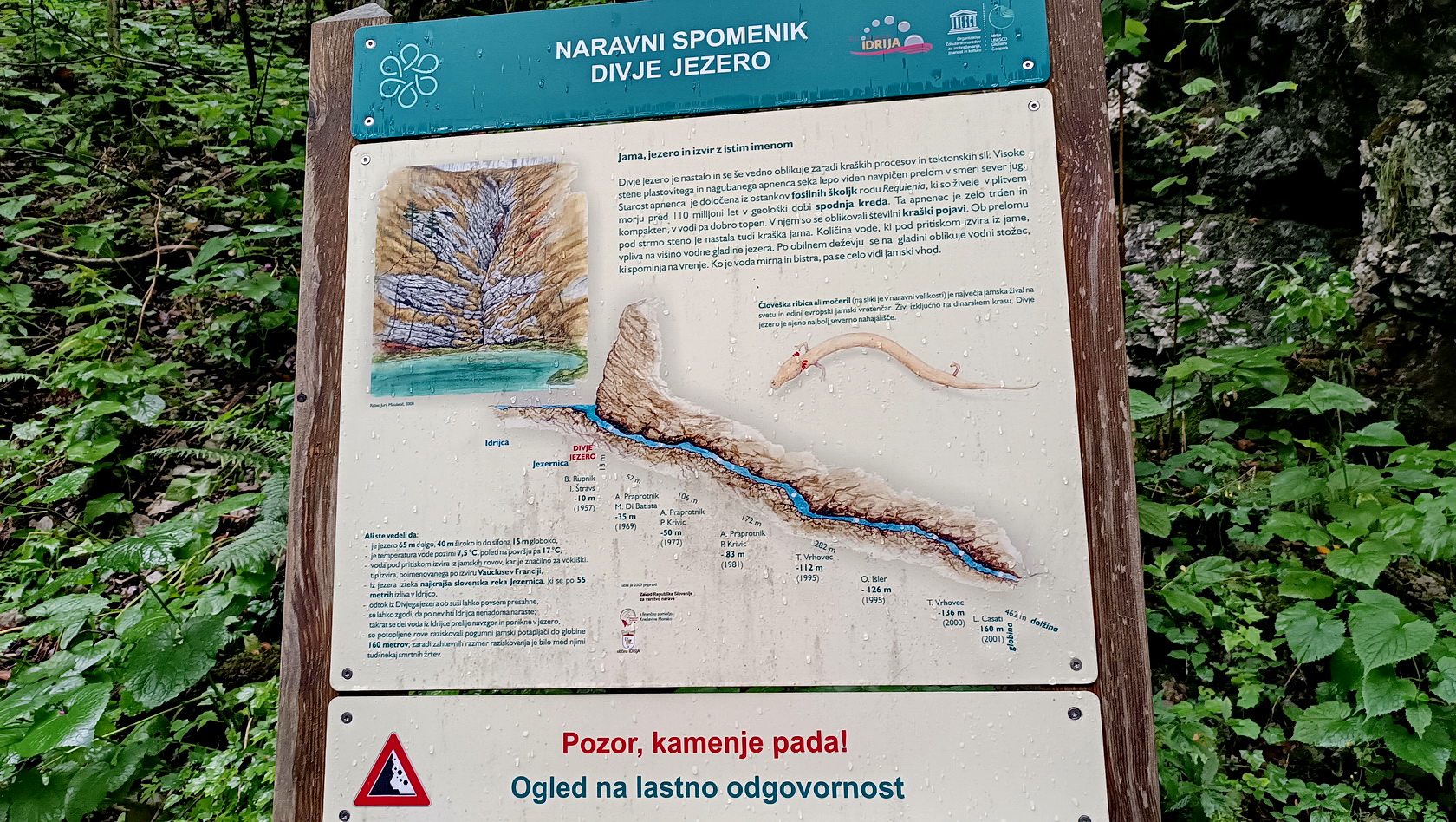 Divje Jezero, ki se izliva v Idrijco je bila polna vode. Tam smo naredili tudi skupno sliko. Vodič Jože Pavšič, nas je pričakal ob dogovorjeni uri na parkirišču pred Divjim jezerom. Nadaljevali smo pot do Klavž, cesta je bila ozka in proti koncu tudi strma in prepadna, a je šofer to mojstrsko odpeljal.