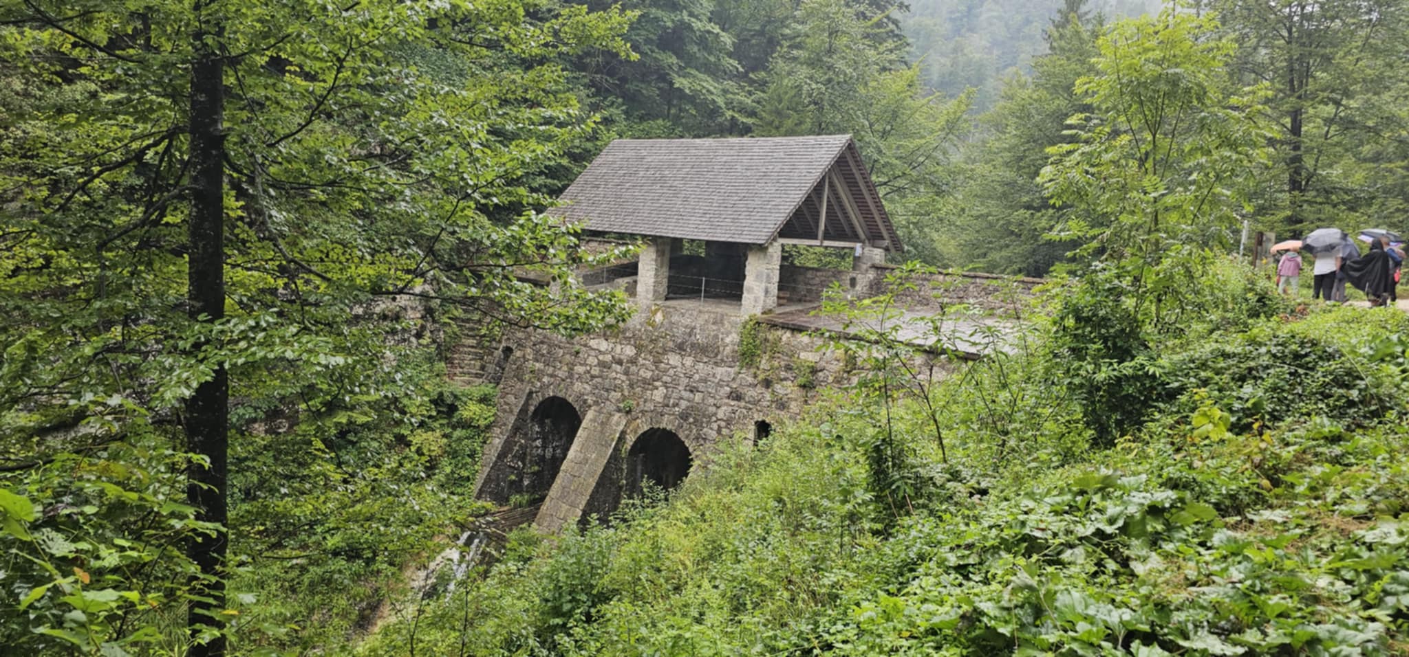 Ogledali smo si Klavže –vodne pregrade- pravijo jim tudi Slovenske piramide, ki so bile izdelane po načrtih domačina Jožefa Mraka že leta 1750 in so služile Idrijskemu rudniku kot pomoč za spravilo lesa po reki Belci in Idrijci. Les so ga potrebovali v rudniku. Vsi smo si težko predstavljali ta mehanizem splavljanja lesa, a nam je Jože to zelo plastično in slikovito prikazal.