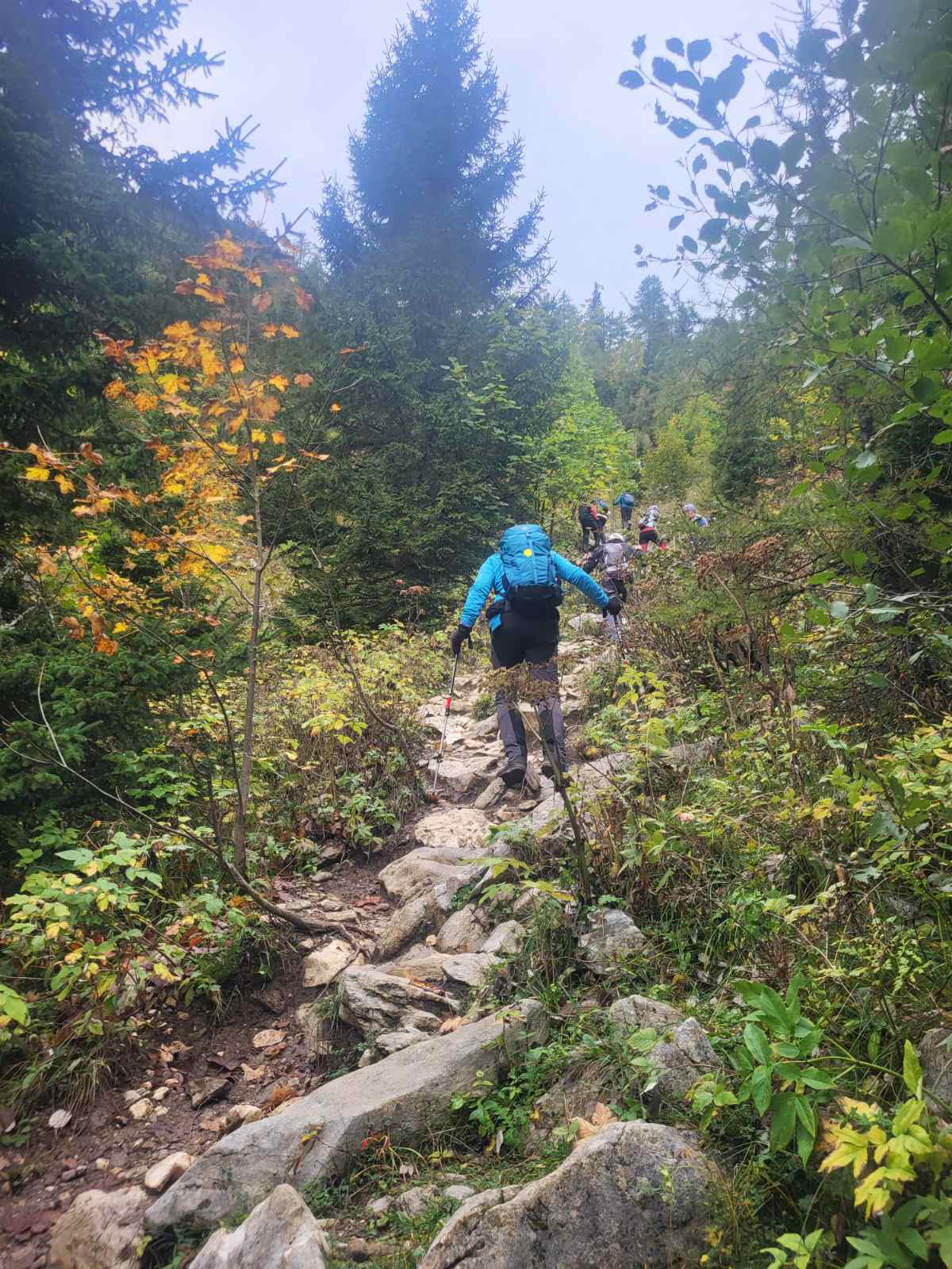 Na Rudnem polju smo vodniki samozavestno zastavili pot kar naravnost na vrh Viševnika, kot se spodobi za jesen – brez ovinkov, a z veliko dobre volje. Že na začetku nas je gorski stražar resno opomnil, da je Pokljuka varovano območje ruševca, zato smo bolj tiho dihali in previdno stopali po mestu, kjer je bilo blato bolj prepričljivo kot asfalt.