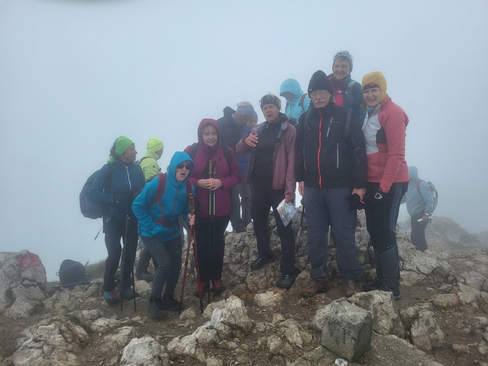 Med potjo so planinci-gobarji prišli na svoj račun – ne zaradi jurčkov, temveč zaradi pisanih rdečih mušnic, ki so krasile gozd kot božične okraske. Tik pod vrhom se je vreme odločilo, da nas malce preskusi: sonce in oblaki sta se menjavala kot TV kanali brez daljinca, nato pa je megla z vetrom poskrbela za pravo gorsko atmosfero, a nasmehi so bili sončni.